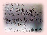 <<2012年>> ![]() 2012.05.03 ぽこあぽこの一番最初の生徒アヤミちゃんの赤ちゃん。 3か月のAと君です。おぎゃっと21の会場で久しぶりに再会しました。 初期の頃(十数年前)の卒業生はもうママになってるのねぇ〜! 左:おぎゃっと21の会場にて。 右:5月5日の初節句 Aと君の足型でこいのぼりを作ったそうです。 グッドアイデアだね〜〜☆ ![]() ![]() 2012.4.25幼稚園へ入園したSちゃんより。 レッスン最終日に撮った写真を一緒に同封してくれました お手紙と折り紙ありがとう〜! リトミックの時もお手紙たくさんくれたね☆ありがとう 幼稚園元気に通ってね〜(#^.^#) ![]() 2012.4.14小学校へ入学したA太君より。島田教室。 翌日レッスンで会うのに、切手を貼って送ってきてくれました。 大きな桜の下で、パパと一緒にジャンプしているA太くん。 入学した喜びが伝わってきます。 小松島から毎週通ってくれてありがとう! ![]() 2012.4.14 幼稚園へ入園したYかちゃんより。 お手紙に折り紙と写真をつけてくれました。 写真は自分で選んだんですって!右はママからのお手紙。 ありがとね〜嬉しかったです。 ![]() ![]() 2012.3.21ココネちゃんパパより。住吉教室 パパと娘ちゃんでいつも参加。 最終日に私の座右の銘のお酒を贈ってくださいました。 ありがとうございます。早速いただいてます(#^.^#) ![]() 2012.3.21カレンちゃんママよりお手紙。住吉教室 リトミックのある日は保育園をお休みして 来てくれていました。ありがとね☆ ![]() ユイちゃんよりレッスン最終日に。島田教室 「お世話になりました」と言って 手渡してくれました。ありがとね〜! 美味しかったよ(#^.^#) ![]() 2012.3.15カイくんよりお手紙。北島教室レッスン最終日に。 男の子は少なかったけど、いつもニコニコと参加してくれてたね。 前へ出てくるのも、恥ずかしくなくなって、とっても大人になりました(#^.^#) ![]() 2012.3.15ユメカちゃんよりお手紙。北島教室レッスン最終日に。 レッスンのたびにたくさんお手紙をくれました。これが最後だね〜。 幼稚園へ行ってもお友達たくさん作ってね! ![]() 2012.1月マサト君ママよりお手紙。島田教室pクラス 途中で転勤になっちゃいました(;_:) 向こうでもマサト君にあうリトミックのお教室が見つかるといいね。 |